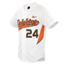 The 3B Hitter is a full-button jersey with underarm panels that wrap around the back. It features trim that goes down the shoulders and around the shoulder blades, lining up the neckline of the jersey. This jersey is only offered in Pin Dot Mesh.