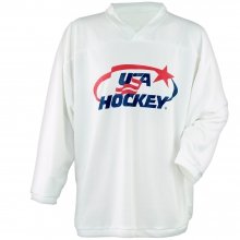 Go back in time to the 1980s with this replica hockey jersey! Remember the anticipation of the MIRACLE ON ICE® hockey game and make yourself part of the team when you personalize this jersey with your name and number. Features red and blue striped detailing and embroidered "USA" with satin stitching. Made of 100% heavyweight polyester knit fabric.